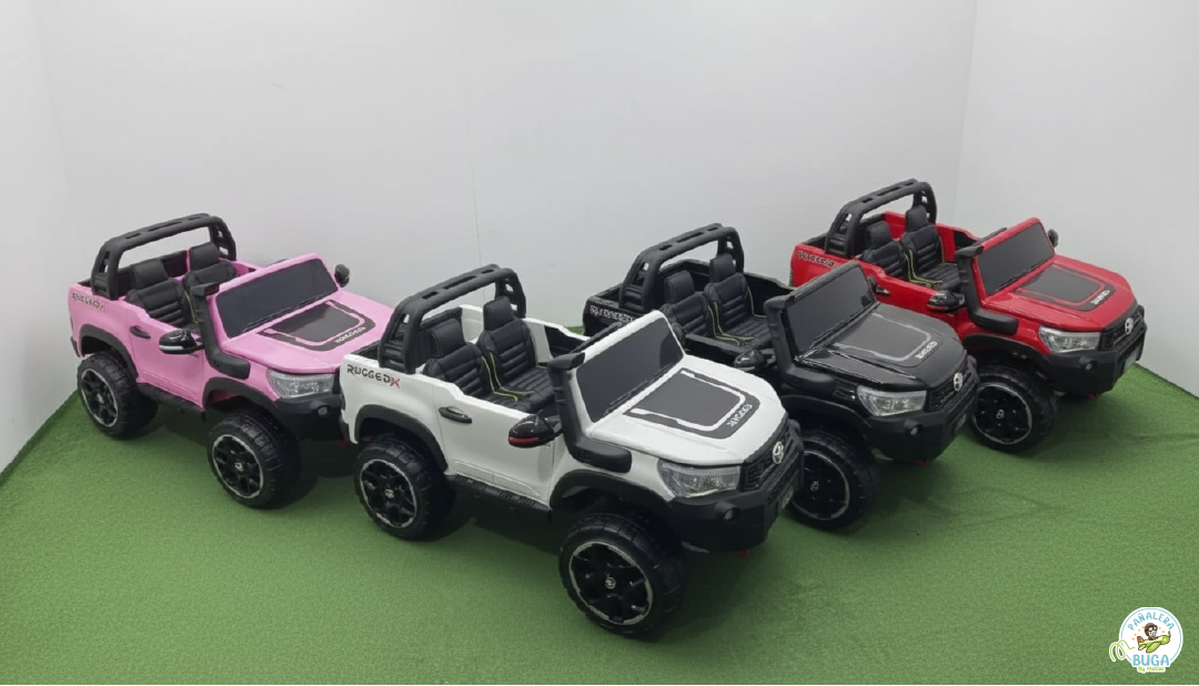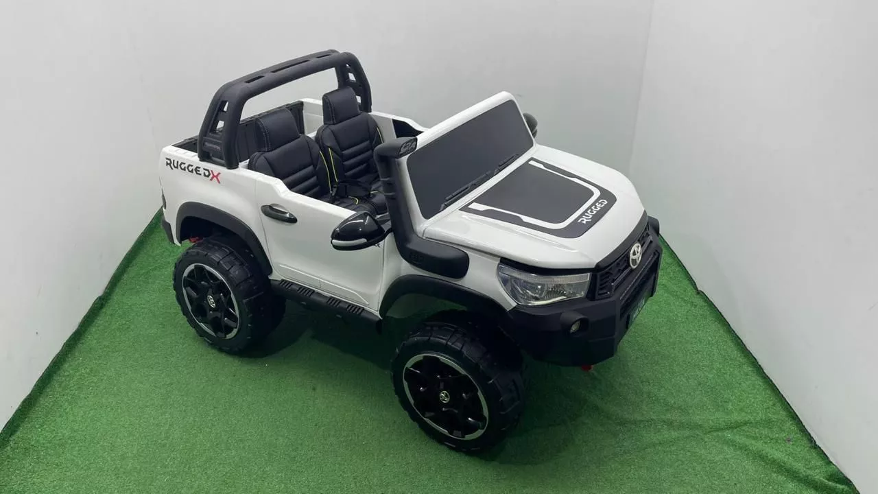 El Toyota Hilux eléctrico para niños está diseñado para ofrecer una conducción cómoda y controlada, ideal tanto para uso en interiores amplios como en exteriores. Su diseño tipo pickup y su apariencia realista convierten cada paseo en una experiencia emocionante y llena de aventura.