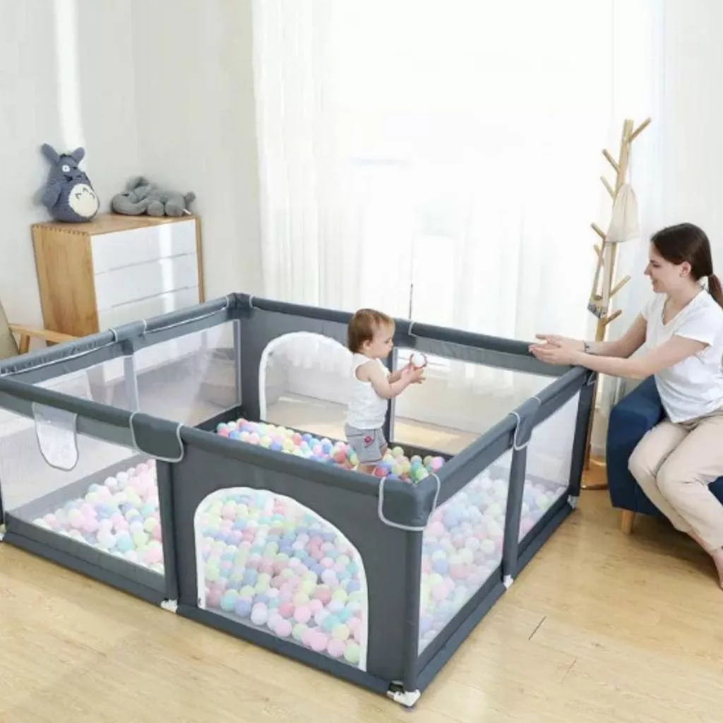 El corral para bebé grande con malla de seguridad es la solución ideal para crear un espacio amplio, cómodo y seguro donde el bebé pueda jugar y explorar libremente dentro del hogar.